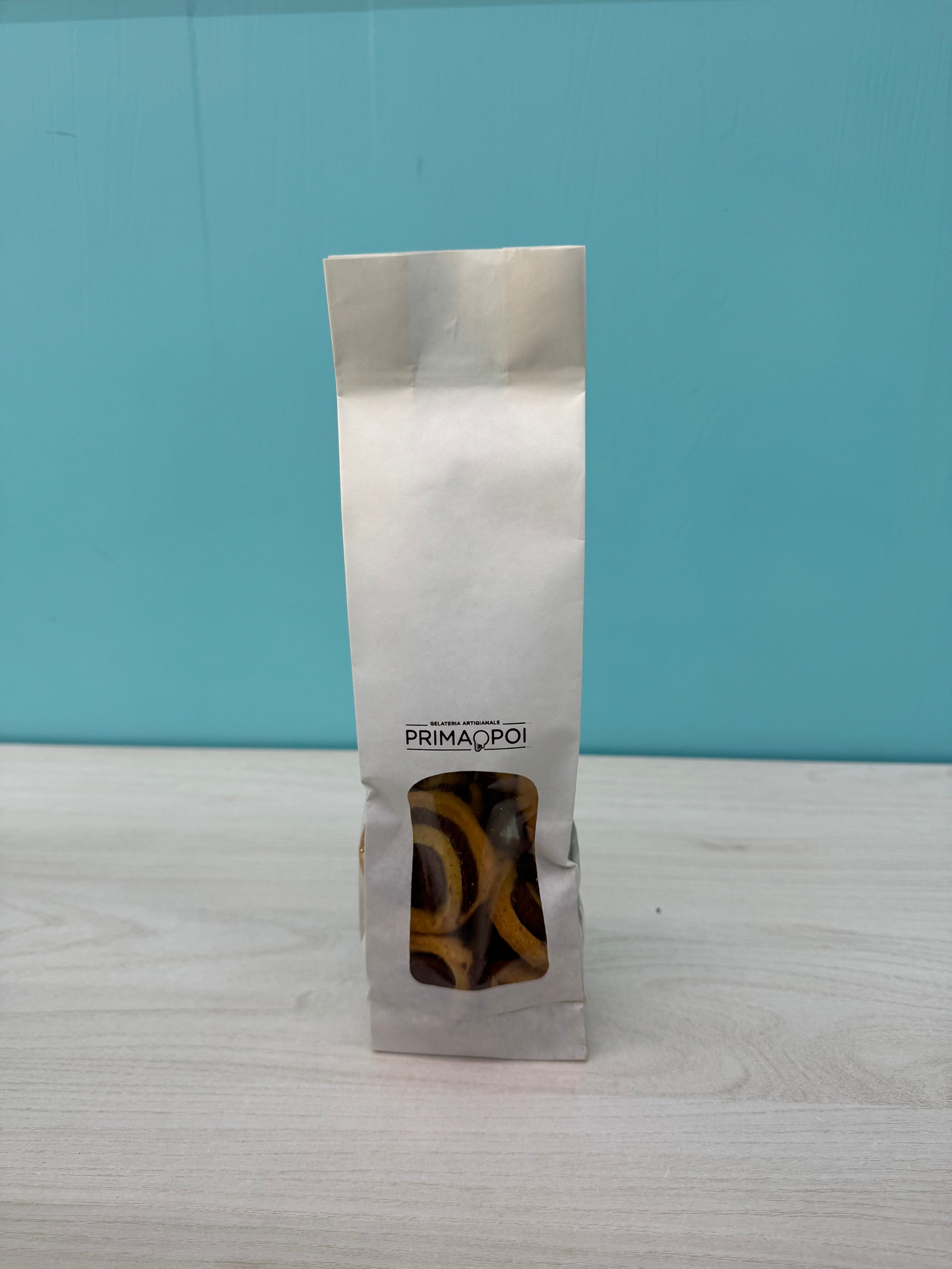 Farina tipo 1 da grano lavato, Burro, Zucchero, Zucchero a velo (zucchero, amido di mais), Uova, Tuorlo d'uovo, Cacao alcalinizzato 22/24% di burro di cacao (Cacao in polvere, correttore di acidità: carbonato di potassio), Lievito (agenti lievitanti: E450i, E500ii, amido), Vaniglia Madagascar (sciroppo di glucosio, aromi, semi di vaniglia), Sale, Limoni