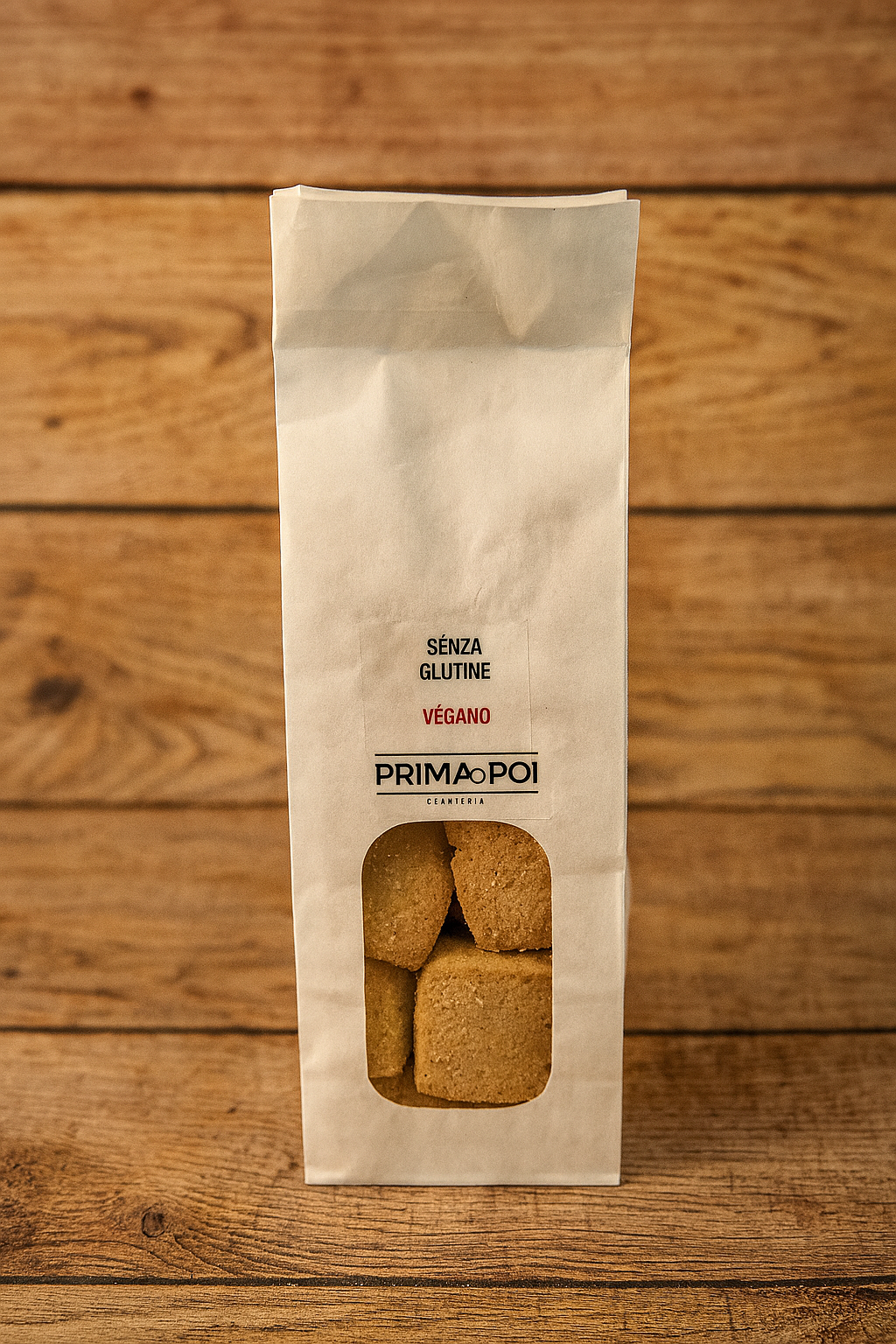 Mix di farine senza glutine (Amido di mais, fibre vegetali (psyllium, inulina), fruttosio, addensanti: guar, E464; farina di mais tostata, enzimi.), Zucchero, Margarina vegetale (grassi vegetali (palma, cocco), acqua, oli vegetali (girasole e soia in proporzioni variabili), sale, emulsionante: mono e digliceridi degli acidi grassi, aromi naturali, correttore di acidità: acido citrico, coloranti: caroteni), Latte di mandorla (acqua, zucchero, crema di mandorle 2,5%, stabilizzante, gomma fi xanthan, aroma naturale di mandorla, sale marino), Olio di girasole, Farina di mandorla, Limoni, Agenti lievitanti: Carbonato di ammonio, Sale