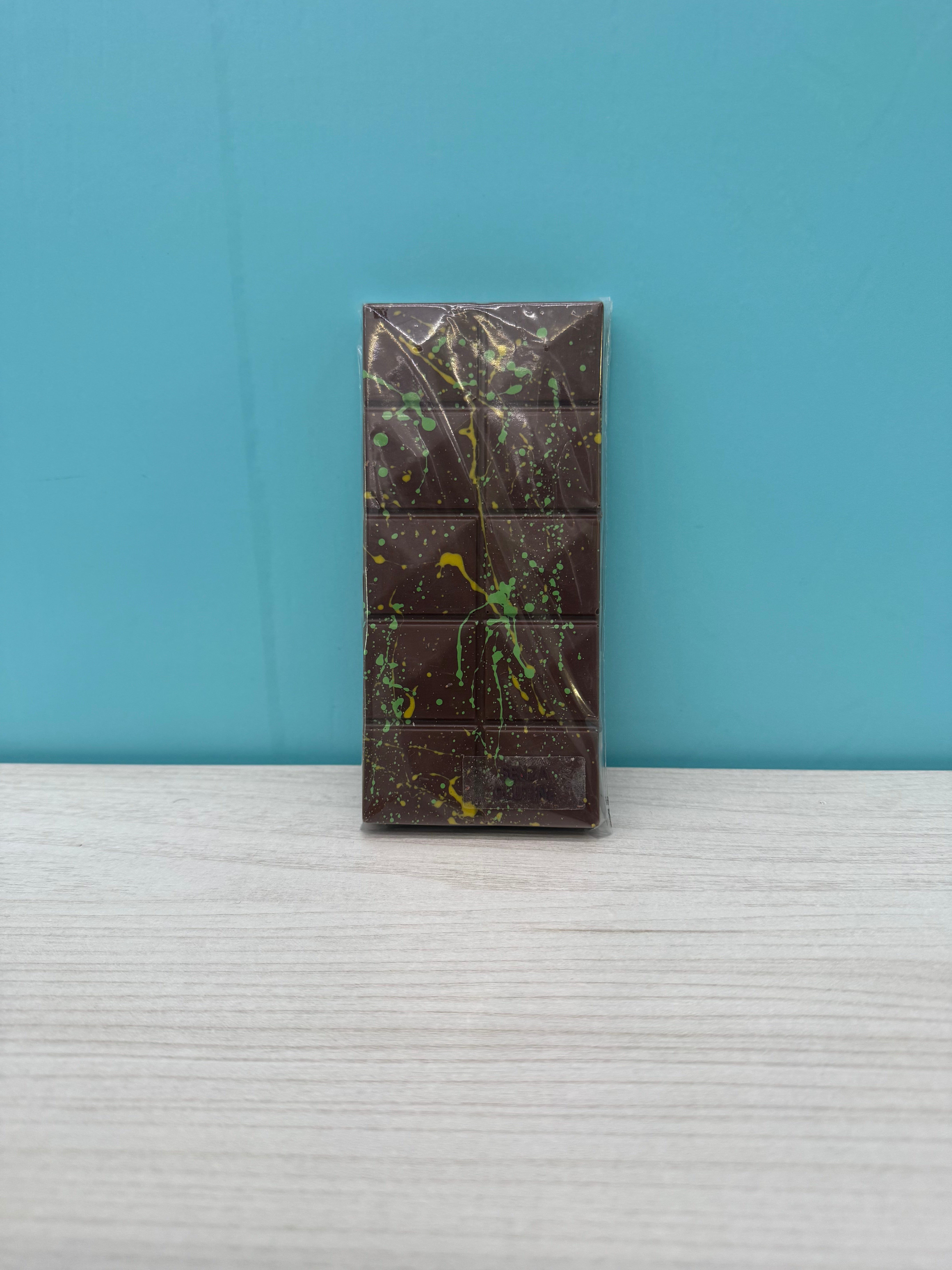 Variegato Dubai senza glutine (olio (girasole, palma), zucchero, E1200, pistacchio 13%, glucosio disidratato, kataifi (amido (mais, patata), farina (riso), oli (girasole), addensanti E415), maltodestrina, sale, emulsionante: lecitina di girasole; aroma, coloranti E140(i), E141, E100) (71,4 %), Cioccolato al latte Alpino (Zucchero di canna, burro di cacao, latte intero disidratato, massa di cacao (Ecuador, Venezuela), emulsionanti: lecitina di soia; aroma naturale di vaniglia. Contiene: burro di cacao (33%).) (23,8 %), Cioccolato bianco avorio (Zucchero di canna, burro di cacao, latte intero disidratato, emulsionanti: lecitina di soia, aroma. Contiene: burro di cacao (35%).) (4,8 %)