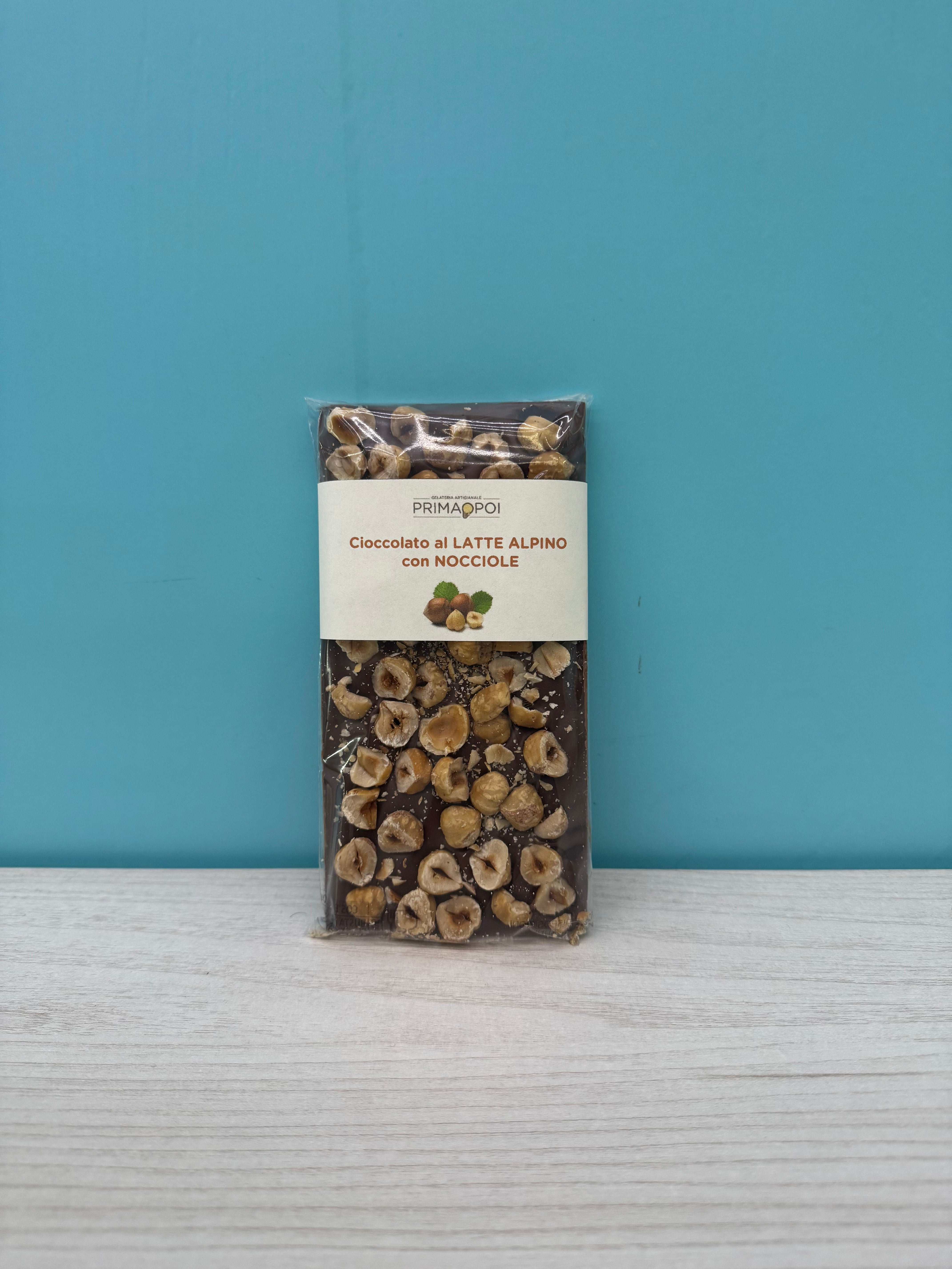 Tavoletta di cioccolato al latte alpino con nocciole 80gr
